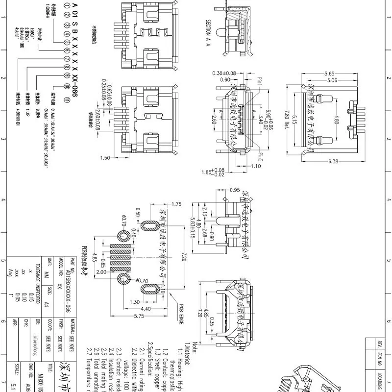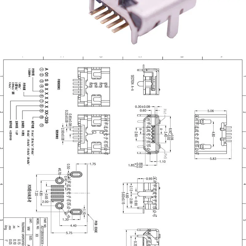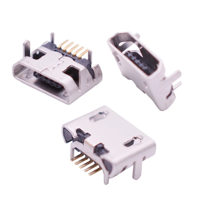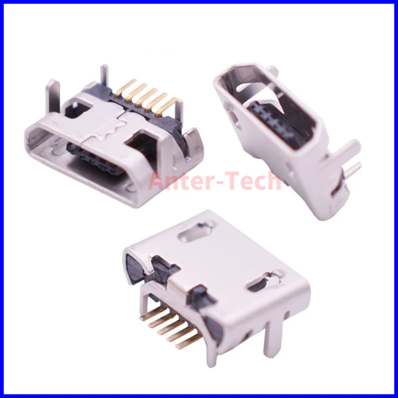 Comprar 50 Uds micro USB 5pin jack bocina de buey placa de cuatro patas enchufe hembra conector USB bocina de buey aguja larga mini usb