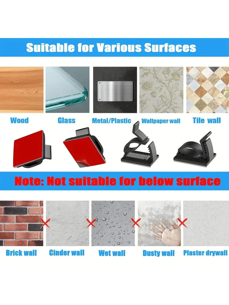 Conveniente: con el diseño de base autoadhesiva, estos clips para cables se pueden adherir firmemente a superficies lisas, brindándole mucha comodidad en la vida diaria.
