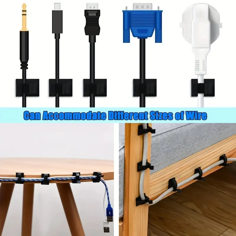 Ahorre espacio: los clips para cables ayudan a mantener su lugar limpio y organizado, y eliminan la molestia de los cables desordenados; El entorno limpio y ordenado te hace sentir cómodo.