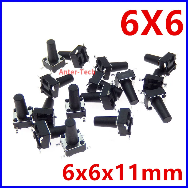 Comprar 50 Uds SMT 6*6*11 6X6X11 6X6X11mm 4PIN interruptor de parche Micro interruptor de botón interruptor de Reinicio PCB SMD