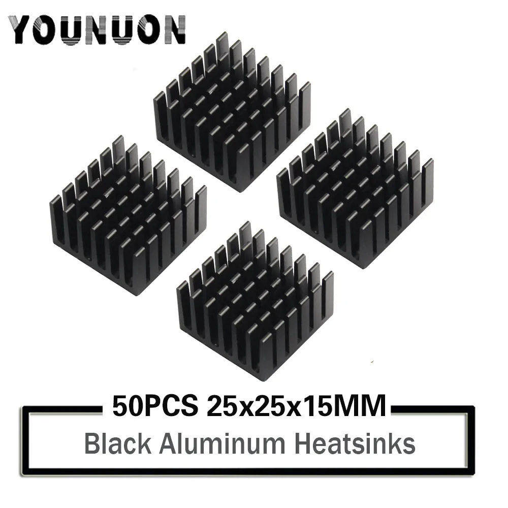 Comprar 50 Uds YOUNUON 25x25x15mm disipador de calor de aluminio negro para Chip CPU GPU VGA RAM IC LED disipador de calor refrigeración del radiador con cinta 3M