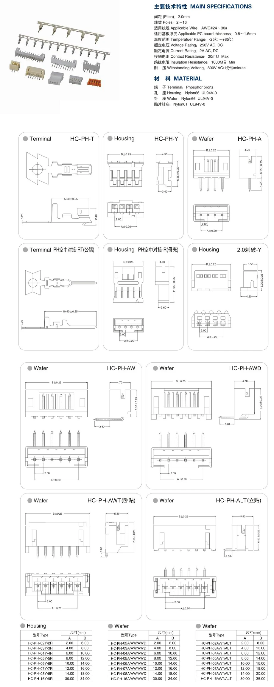 50 unidades PH2.0 conector macho de ángulo recto blanco soporte de aguja de pie de 90 grados cabezal de 2,0 MM aguja curva 2/3/4/5/6-12 pines AW Pin curvo