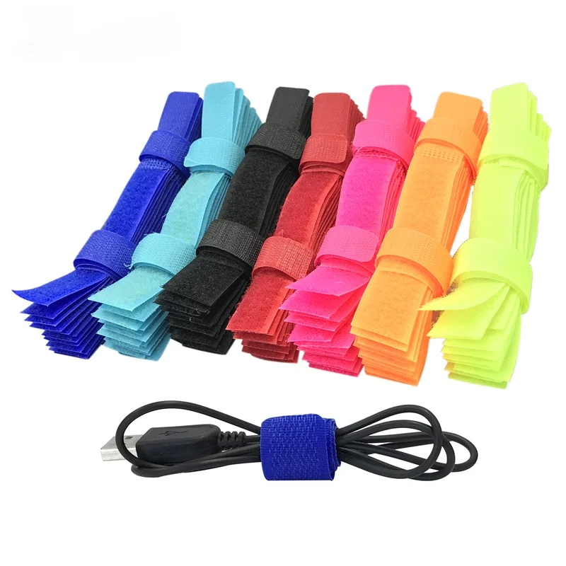 50 unids/lote Cable de amarre Cable reutilizable Cable organizador 2*17,5 cm colorido ordenador datos Cable de alimentación correas de amarre de Cable