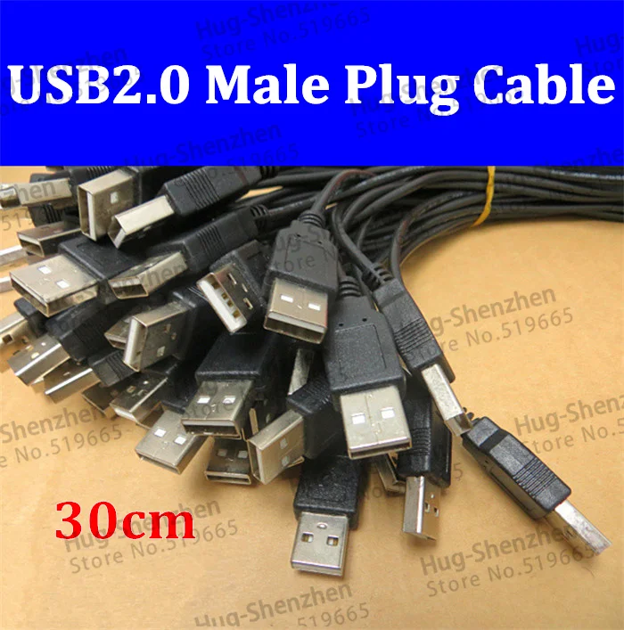 Comprar 50 unids/lote USB2.0 CABLE de extensión USB de Cable macho de 30 CM 22AWG cable para ordenador Accesorios teléfono mp3/mp4