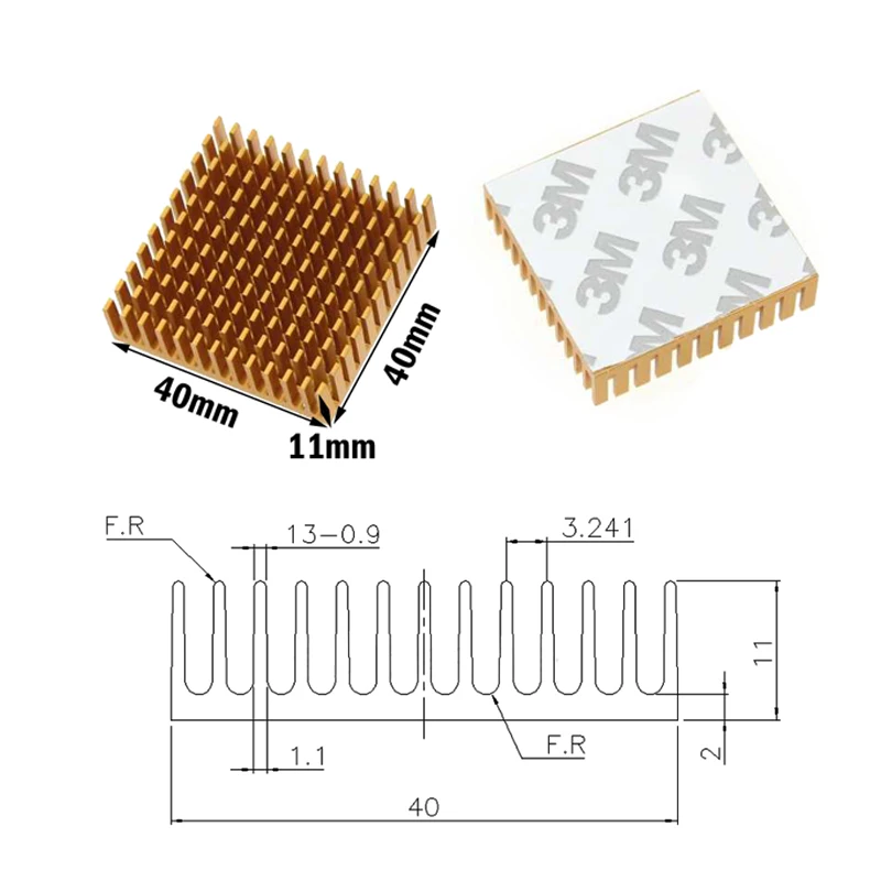 500 disipadores de calor dorados de 40x40x11 mm