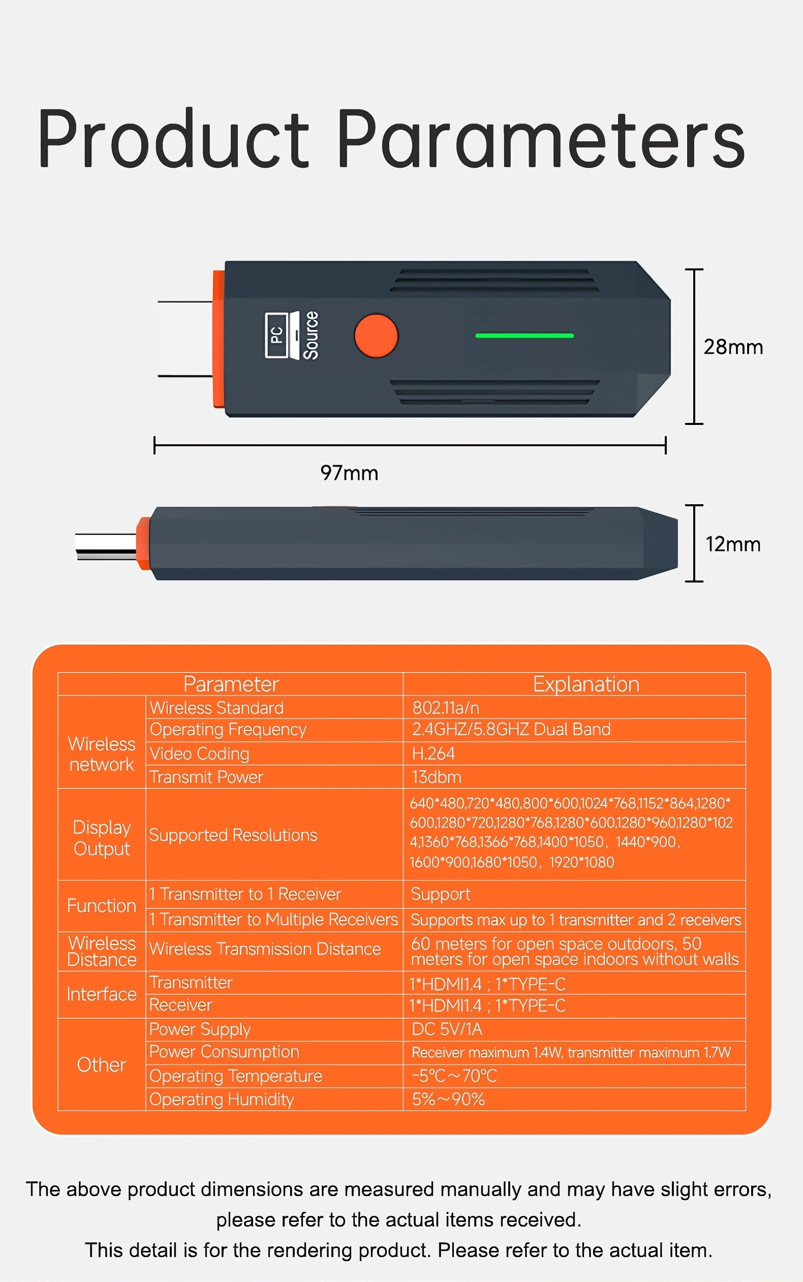 5.Después de conectar todos los dispositivos de visualización, espere de 30 a 40 segundos para que aparezca la imagen, incluidos el receptor y el transmisor.