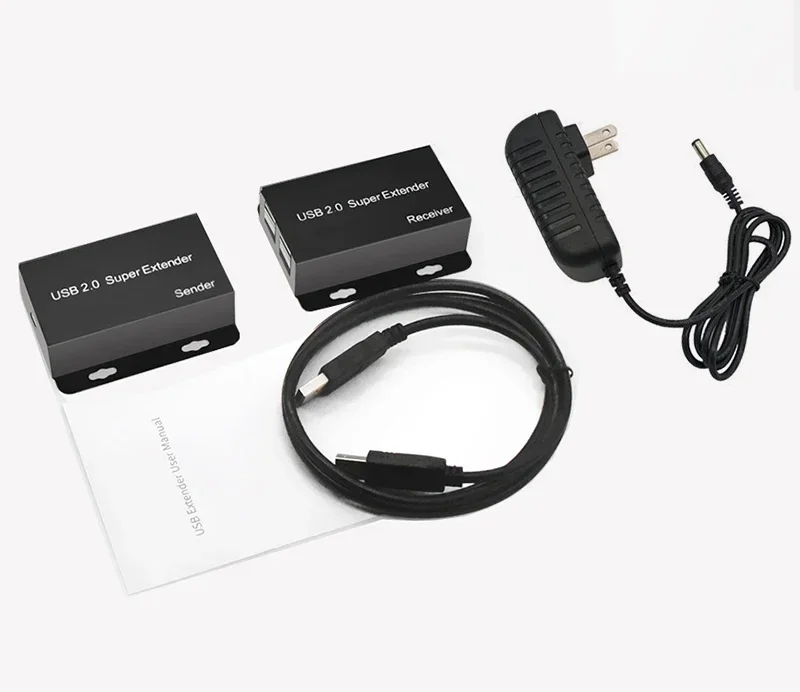 Extensor USB por Ethernet: Ideal para usar con cámaras USB, impresoras, cámaras web, extensiones de teclado/ratón y más dispositivos USB. 1. Le permite conectar sus dispositivos USB a su ordenador a una distancia de hasta 50m/165 pies 2. Conecte la alimentación al transmisor y funcionará (el receptor no necesita fuente de alimentación adicional). 3. Utiliza el estándar Cat5/CAT5e/Cat6. 4. Modo de señal: USB(≤ 5m)--- CAT6( 50m)--- USB(≤ 5m)... 5. Material: Metal.