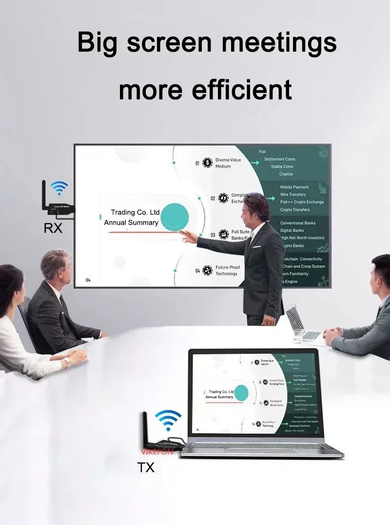 1.Transmisión de audio y vídeo HDMI a través del protocolo de transmisión inalámbrica incorporado, sin necesidad de wifi ni Internet