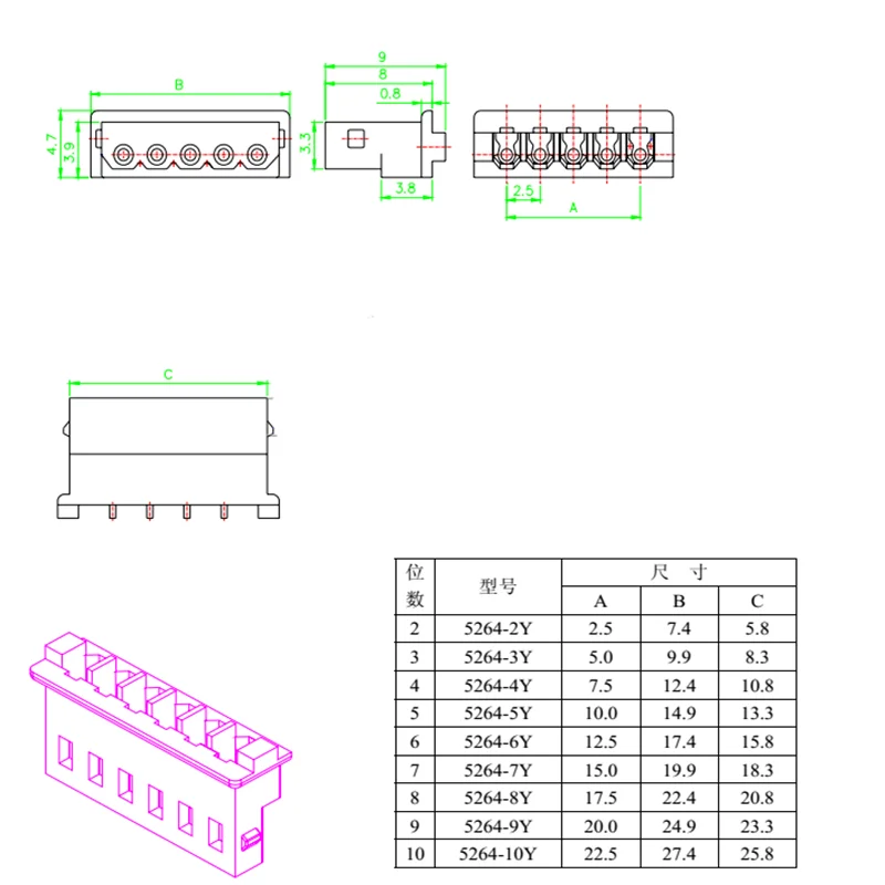10 5264 de espaciado de línea de terminales 2,5mm Cable electrónico 26awg Cable de conexión de un solo cabezal 100MM 2P 3P 4P 5P 6P