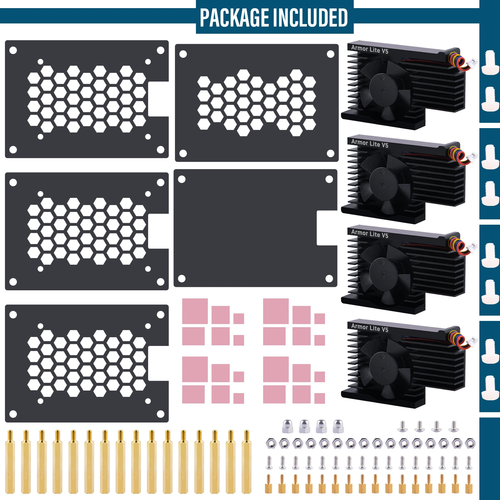 Refrigeración mejorada:La INTEGRACIÓN DE 4 disipadores de calor Armor Lite V5 garantiza una disipación de calor óptima, enfriando eficazmente el Raspberry Pi 5 incluso bajo cargas de trabajo pesadas.