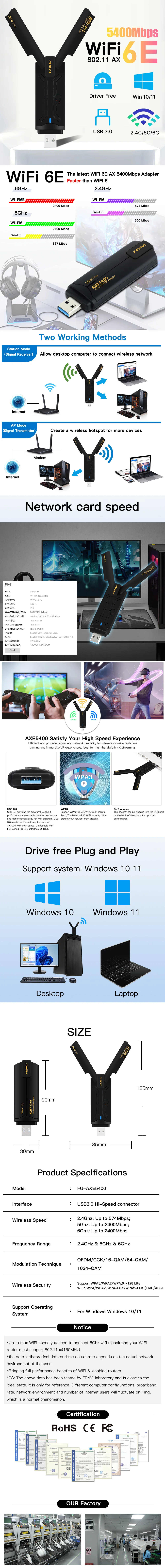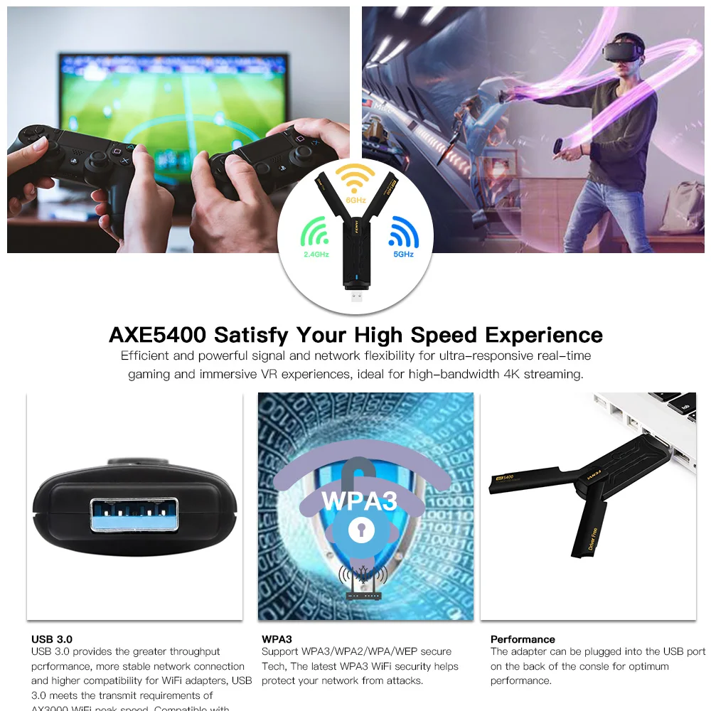 5400Mbps WiFi 6E USB WiFi Dongle USB3.0 WiFi Adaptador