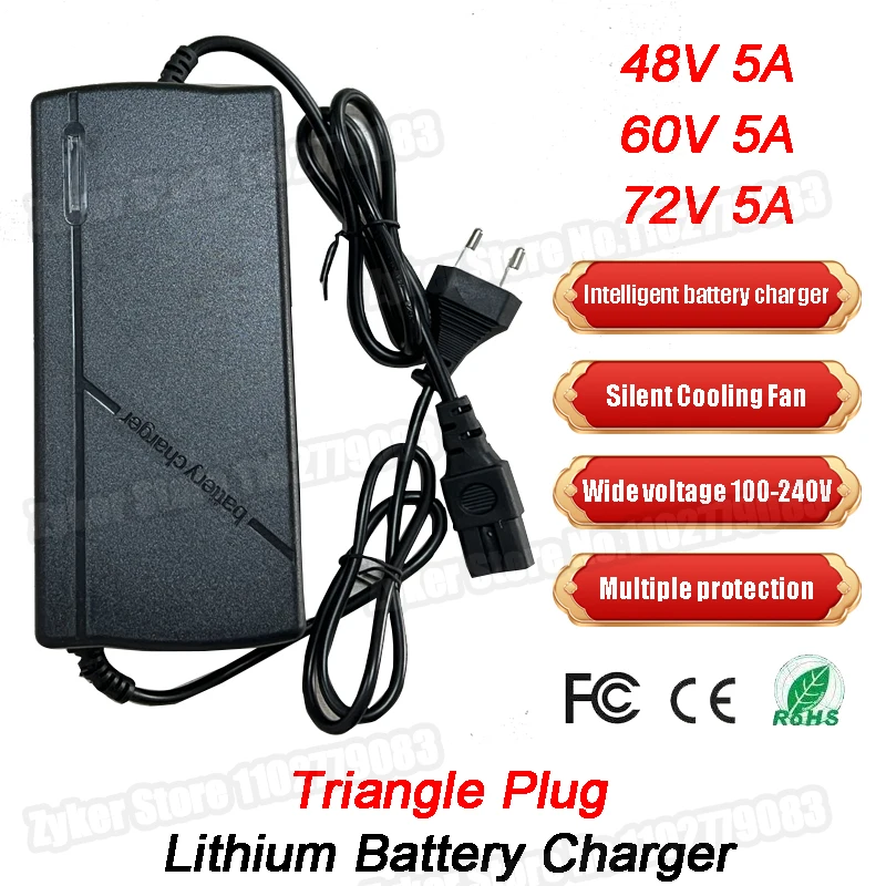Comprar 54.6V 67.2V 84V 5A 三角プラグ リチウム電池充電器 48V 60V 72V 5A スマート充電器 急速充電 13S 16S 20S EUプラグ充電器