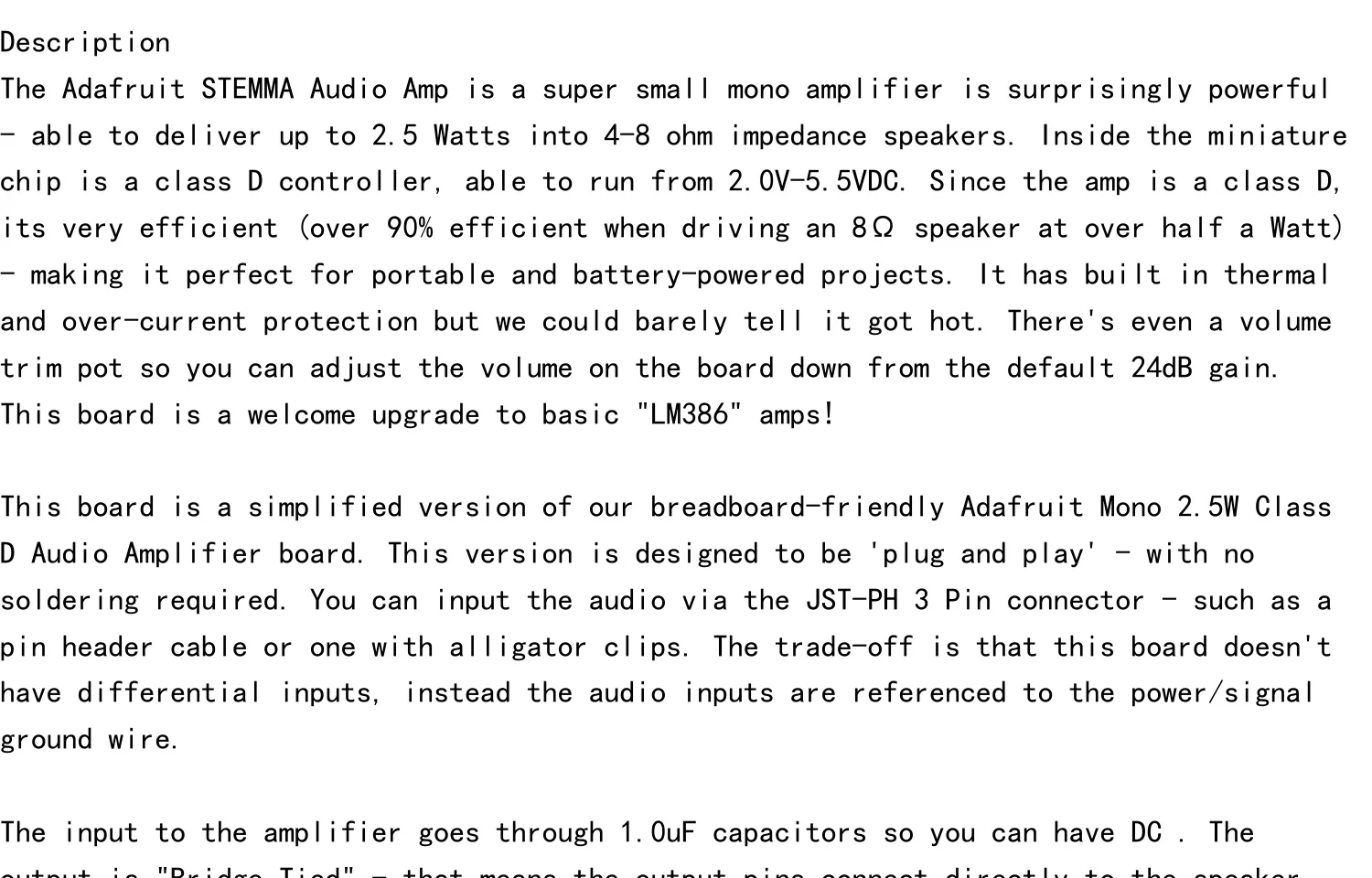 5647 Amplificador de audio STEMMA - Mono 2,5 W Clase D - PAM8302 ESP32