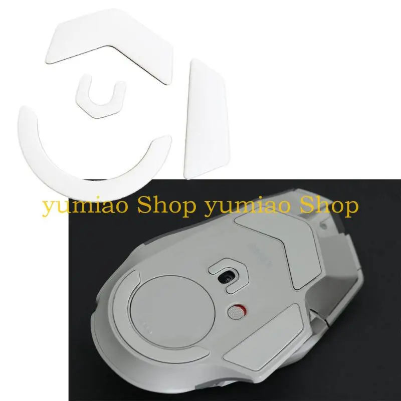Después de quitar la película protectora transparente de las patas del mouse, coloque con cuidado las patas en la parte inferior del mouse para la carcasa y luego aplique una ligera presión para que se ajuste al pie.