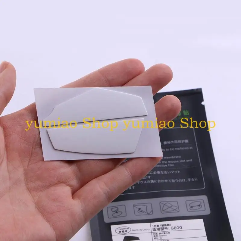 Después de quitar la película protectora transparente de las patas del mouse, coloque con cuidado las patas en la parte inferior del mouse para la carcasa y luego aplique una ligera presión para que se ajuste al pie.