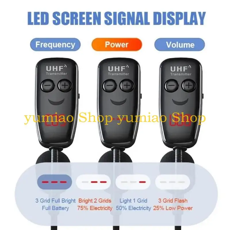 Adoptar la última tecnología inalámbrica UHF que proporciona una potencia fuerte, lo que reduce la posibilidad de interferencias de conexión inalámbrica o WiFi.
