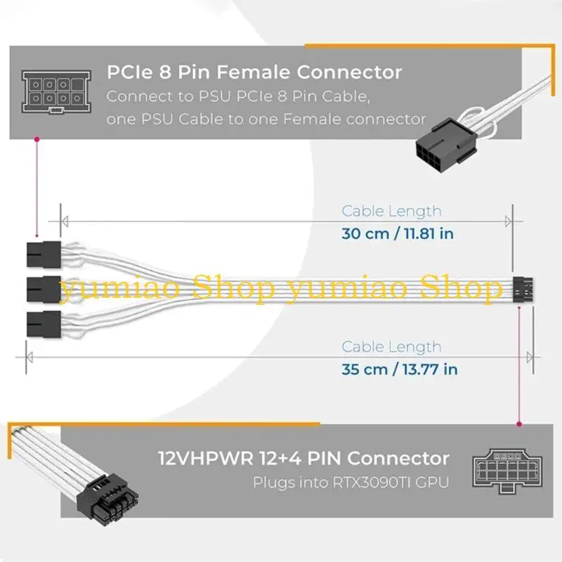 Especificaciones:Nombre del producto: Cable de tarjeta gráfica de vídeo macho de 8 pines a PCIE5.0 12VHPWR de 16 pines