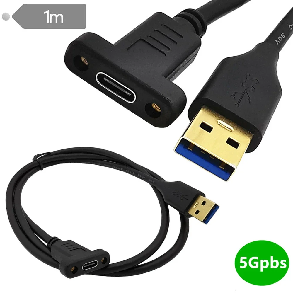 Comprar 5Gbps USB 3,0 tipo A macho a tipo C hembra con tornillo de montaje en Panel Cable convertidor de carga y datos para ordenador portátil PC 1m