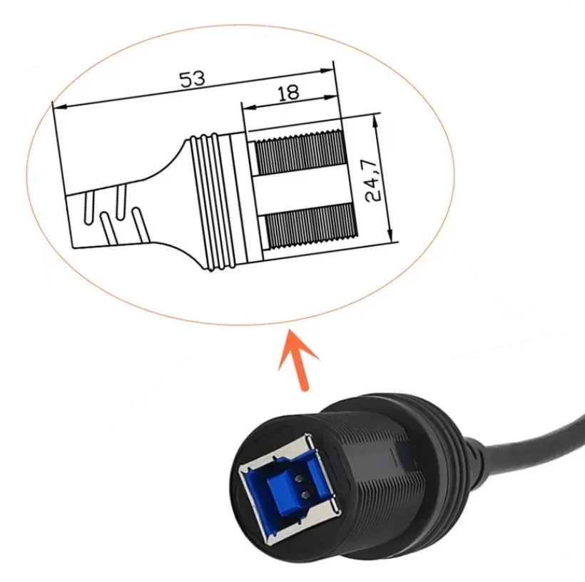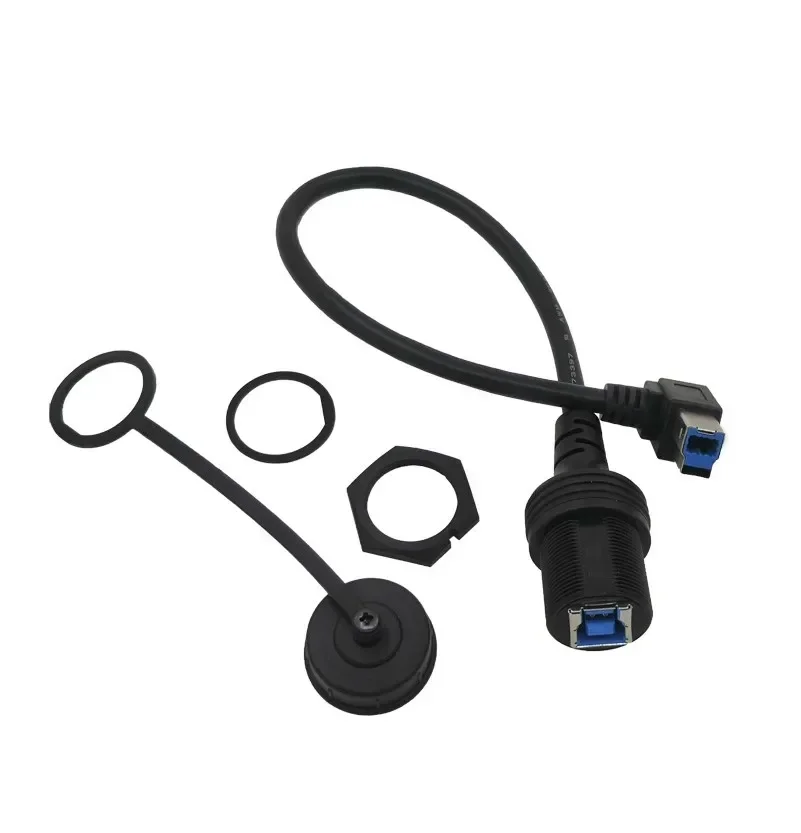 90 ° USB 3,0 Tipo B Macho a hembra Cable de extensión de impresora Montaje en panel impermeable