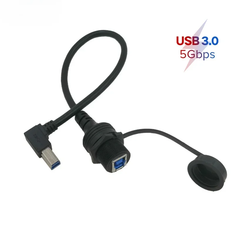 Comprar 5Gpbs-Cable de extensión para impresora, Panel de montaje impermeable IP67, 90 grados, USB 3,0, tipo B, macho a hembra, 30cm