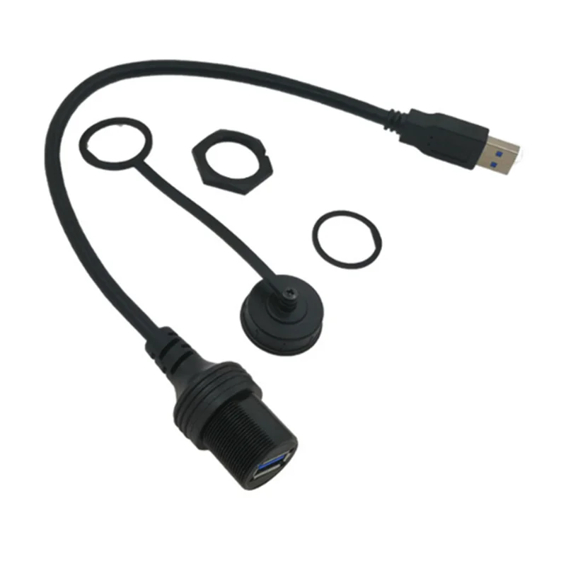 USB3.0 A Male to A Female AUX Flush Panel Mount Extension Cable for Car Truck Boat Motorcycle Dashboard;USB3.0 Extension Cable 0.3m, suitable for Charger data cable high-speed mobile phone charging network card printer laptop connection keyboard USB mouse interface extension cable;