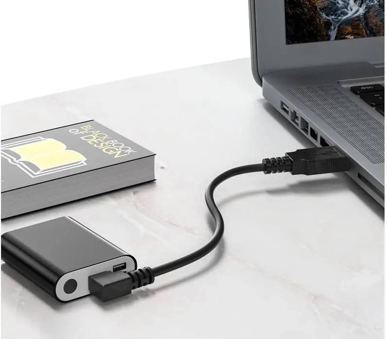 El cable exclusivo tiene un ángulo de 90 grados para que pueda conectar fácilmente su dispositivo con la frustración adicional.