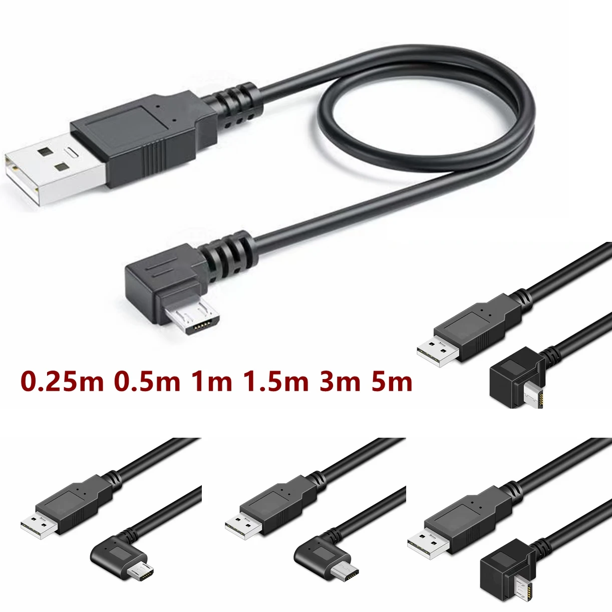 Comprar 5M 3M arriba abajo izquierda derecha en ángulo 90 grados USB Micro USB macho a USB macho carga de datos 2A Cable conector 25cm 50cm para tableta 5 pies