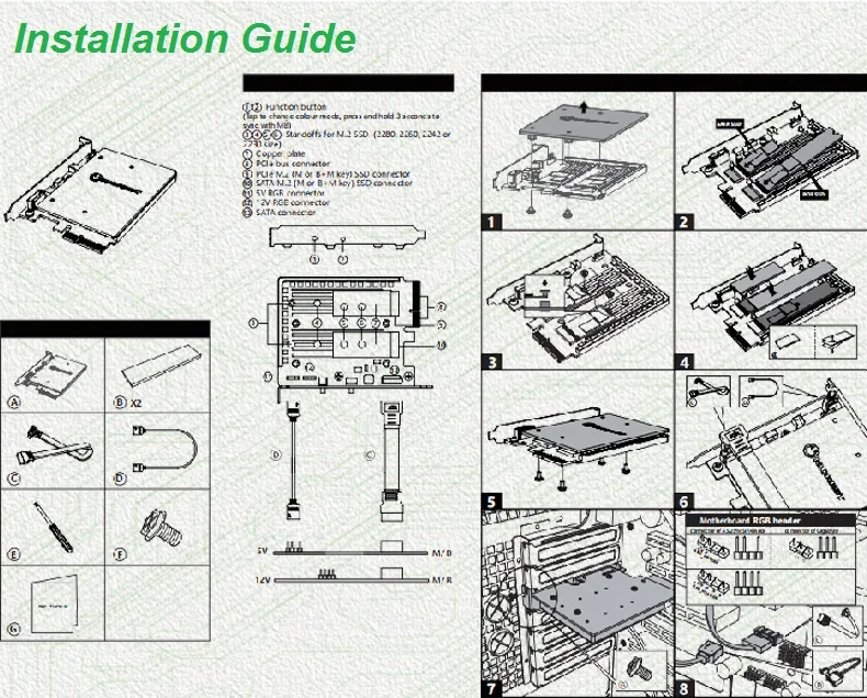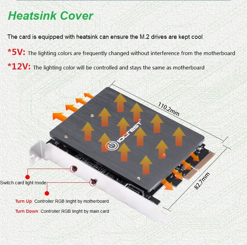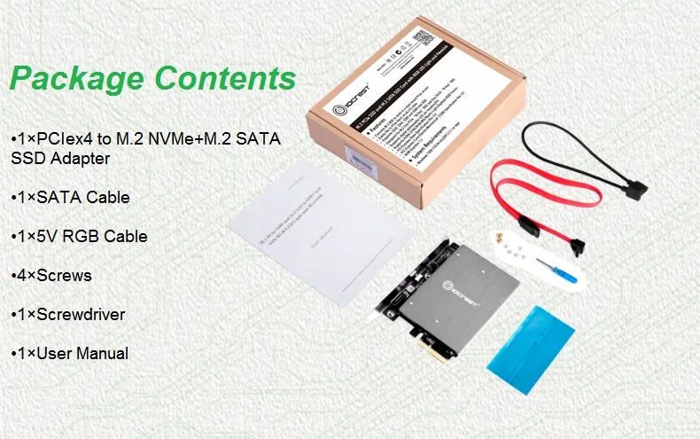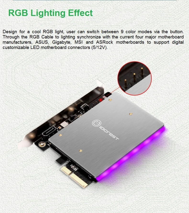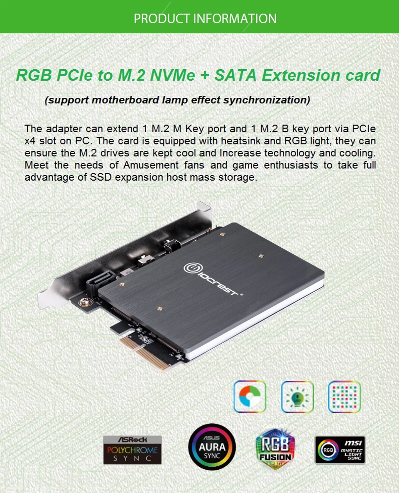 Comprar 5V 12V RGB LED PCIe X4 a M.2 NVMe M KEY con SATA B KEY SSD adaptador PCI Express tarjeta B M Key Port RGB luz negra IOCREST