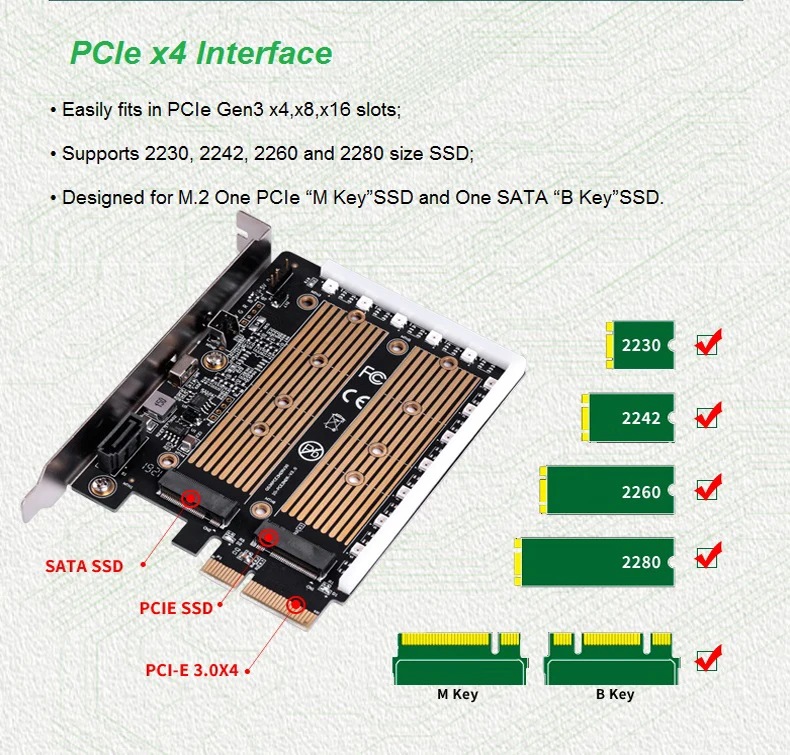 • Diseñado para SSD M.2 One PCIe "M Key" y One SATA "B Key"