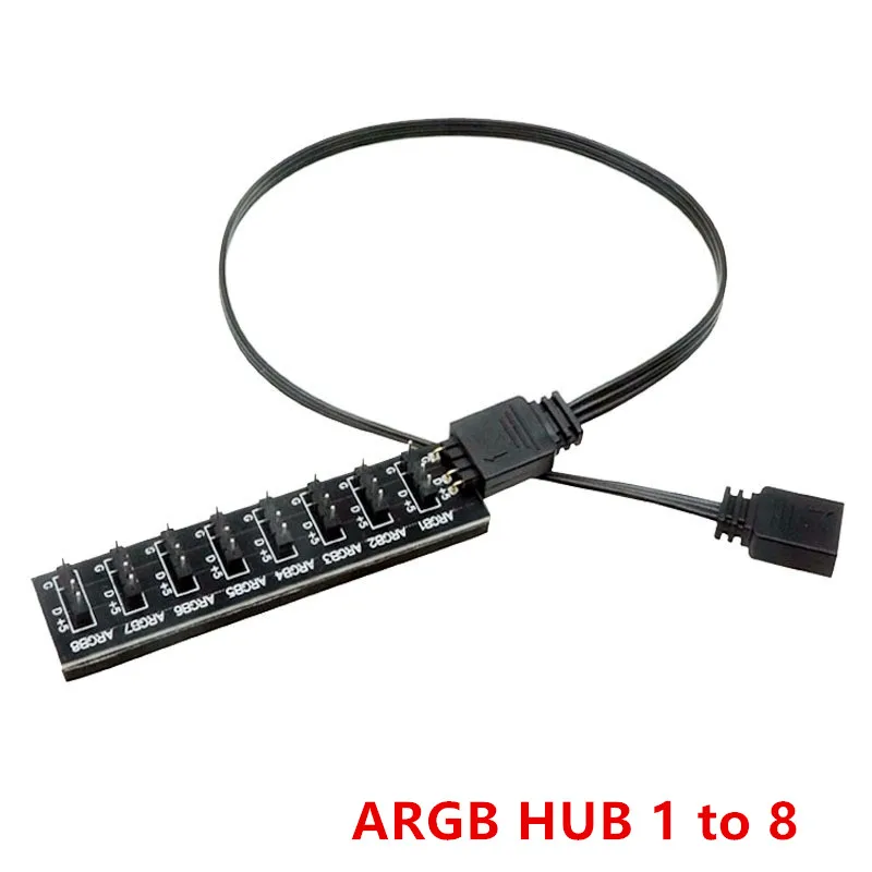 Comprar 5V/3 Pin ARGB ventilador de 4 pines PWM HUB 1 a 8 divisor multidireccional para placa base de PC adaptador de Control de luz de tira LED