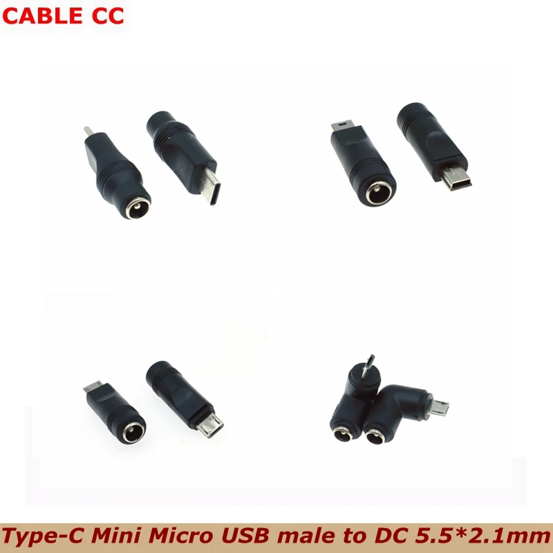Comprar 5V DC 5,5*2,1mm conector de alimentación USB 3,1 tipo C USB-C tipo c 5,5mm * 2,1mm Mini USB derecho y Micro USB adaptador de conector de alimentación CC nuevo