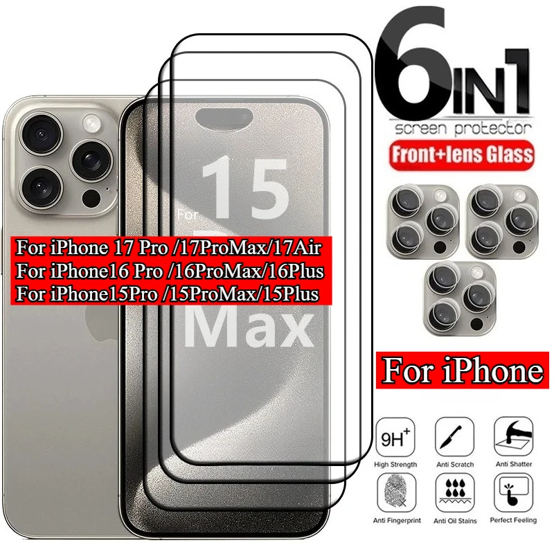 Comprar 6 en 1 para iPhone 17 Pro Max vidrio para iPhone 16 Plus Protector de pantalla de cubierta completa para iPhone 11 12 13 14 15 16 17 Pro Max vidrio