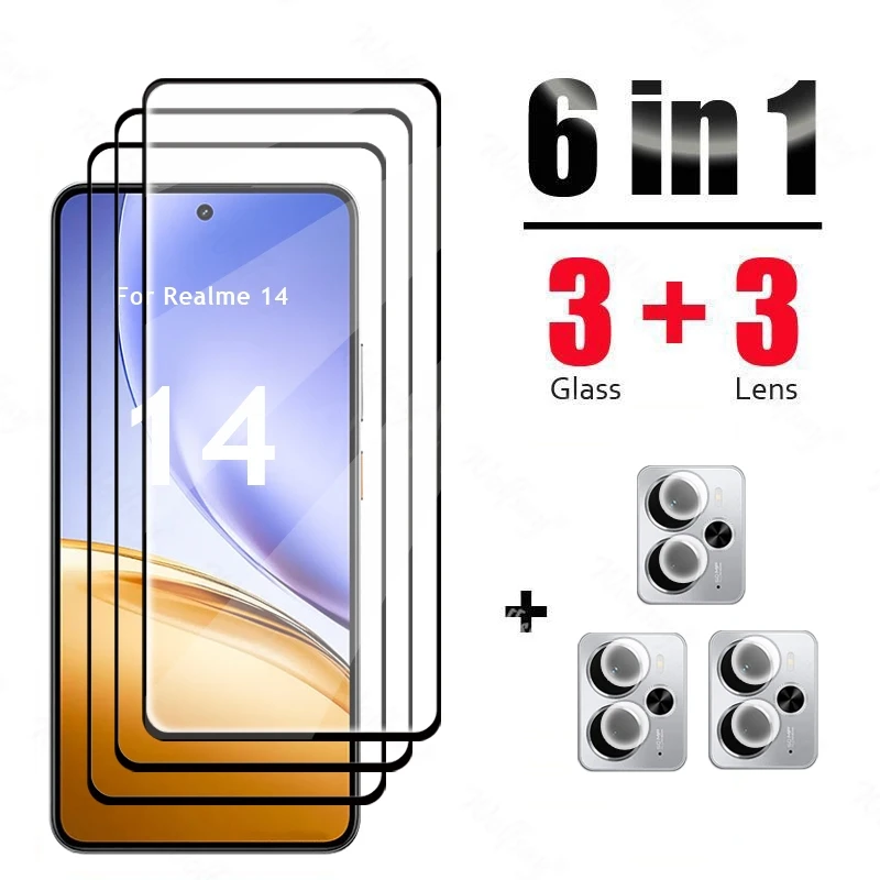 6 en 1 para Realme 14 vidrio templado Realme 14 Protector de pantalla de vidrio película de cámara Realme 14 Protector de película
