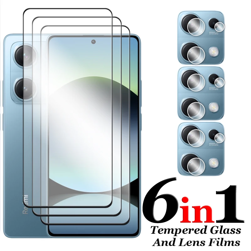 6 en 1 para Redmi Note 14S 4G vidrio para Redmi Note 14S vidrio templado 2.5D cubierta completa Protector de pantalla para Redmi Note 14S película de lente