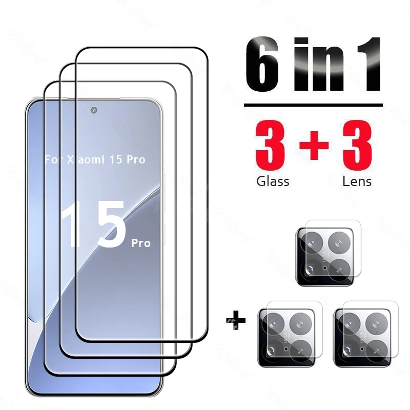 6 en 1 para Xiaomi 15 Pro vidrio templado Xiaomi 15 Pro vidrio cubierta completa pantalla Protector de cámara Xiaomi 15 Pro película