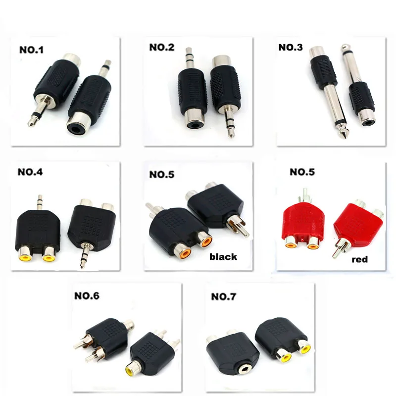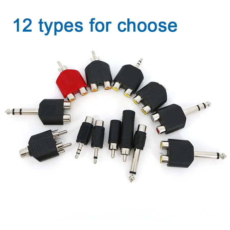 No.3: Conector RCA hembra a macho mono de 2 polos de 6,35 mmNo.4:3polo estéreo de 3,5 mm macho a 2 RCA hembraNo.5: Divisor RCA macho a 2 RCA hembra (color rojo o negro para elegir)No.6: divisor RCA hembra a 2 RCA machoNo.7: conector hembra de 3,5 mm a 2 divisores hembra RCANo.8: RCA macho a conector hembra de 6,5 mm 6,35No.9: Conector RCA macho a conector hembra de 3,5 mmNo.10: divisor estéreo 3polo de 6,5 mm y 6,35 mm macho a 2 RCA hembraNo.11:2 polo mono 6,5 mm 6,35 mm macho a 2 RCA hembra divisorNo.12: 6,35 mm 6.5 Estéreo de 3 polos 1/4 pulgadas macho a RCA hembra de 2 víasPaquete:1 conector.