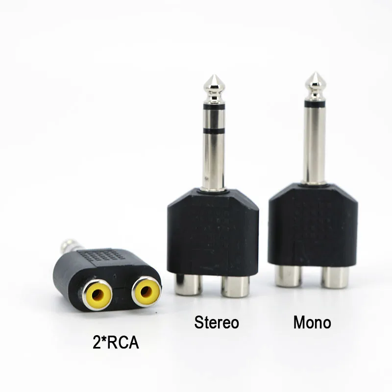 6,35mm 6.5 Audio Mono Estéreo 1/4 pulgadas Macho a RCA hembra de 2 vías 2RCA Y Splitter Altavoz Conector 6,35 para amplificador mezclador