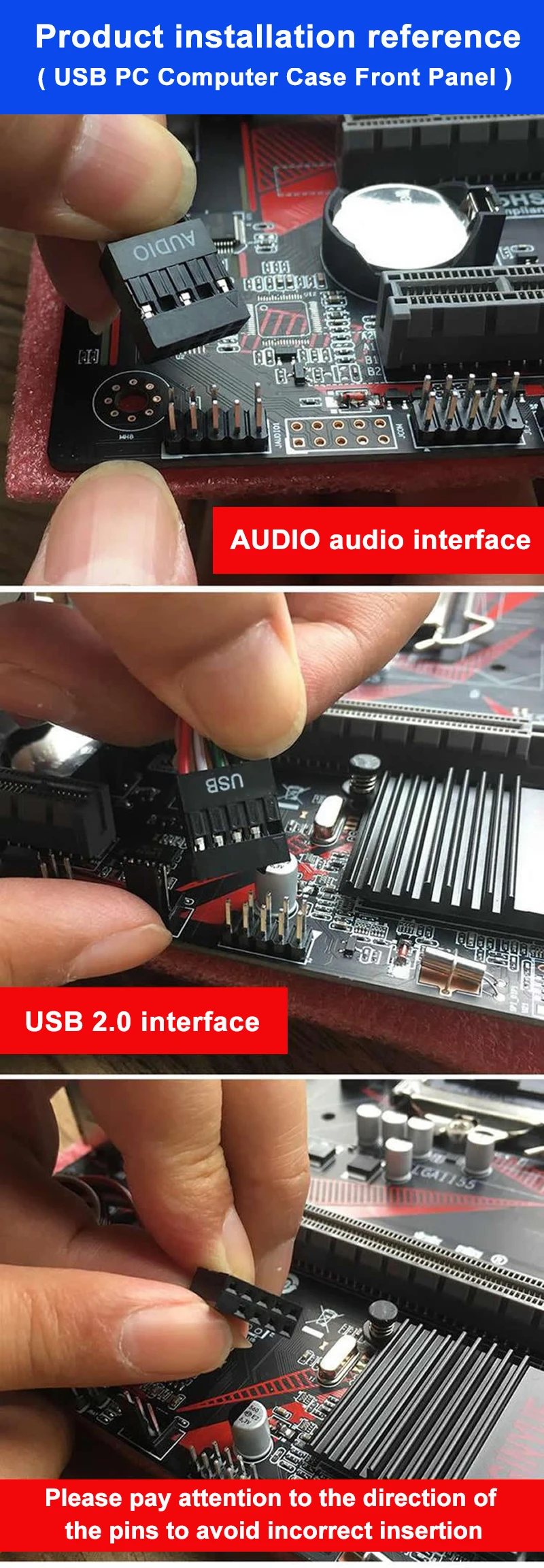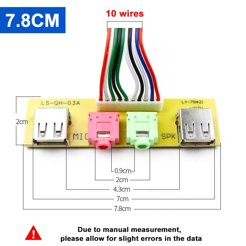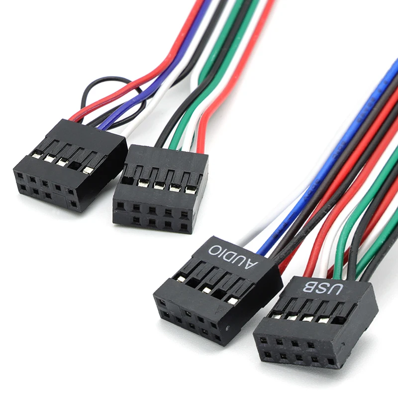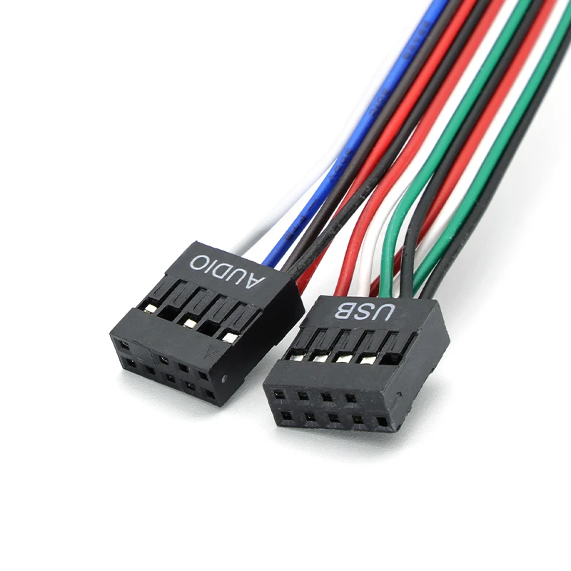 ▲Nombre del producto: Caja de cables y conectores de computadora para PC Panel frontal USB/Audio Protector de enchufe frontal USB 2.0 Extienda los cables de los auriculares del micrófono