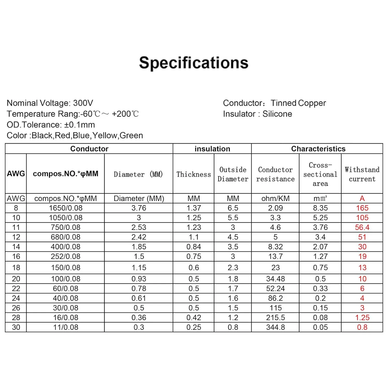 14AWG 6 carretes cada 10 metros/32,8 pies, total 60 metros/196,8 pies