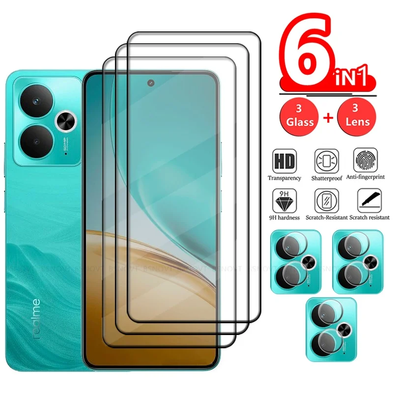 Comprar 6 en 1 para Realme 14T 5G vidrio Realme 14T 5G vidrio templado pegamento de cubierta completa 9H HD Protector de pantalla OPPO Realme 14T 5G lente de vidrio