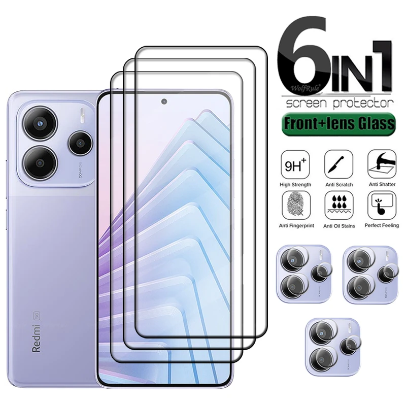Comprar 6 en 1 para Redmi Note 14 5G vidrio Redmi Note 14 5G vidrio templado cubierta completa Protector de pantalla Xiaomi Redmi Note 14 5G lente de cristal