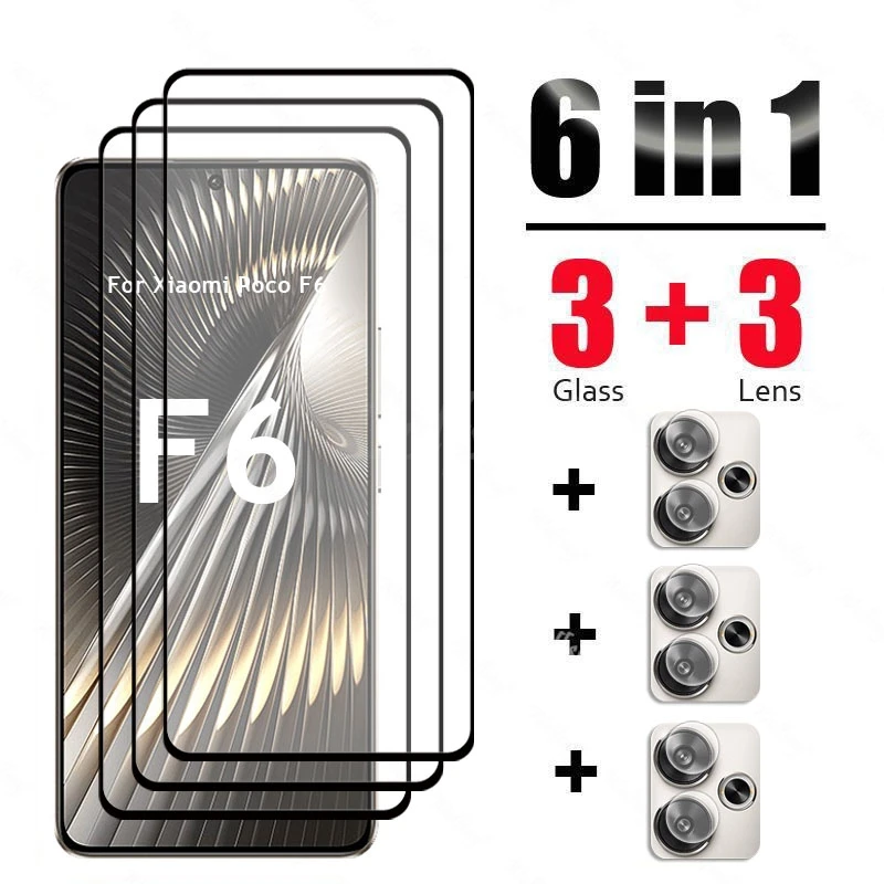 Comprar 6 en 1 para Xiaomi POCO F6 vidrio templado POCO F6 cubierta completa HD 9H dureza Protector de pantalla película de cámara POCO F6 vidrio