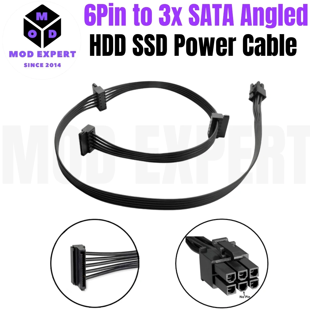6 pines a 3x SATA macho en ángulo para Corsair AX1600i Titanio TYPE 4 alimentación modular, cable de alimentación HDD SSD, 18AWG 50 + 15 + 15 CM