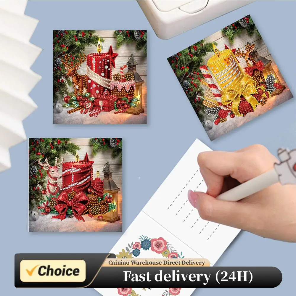 Comprar 6 uds vela de Navidad DIY tarjeta de pintura de diamante tarjeta de dibujo de diamante tarjeta de deseos diario regalos para familiares amigos y amantes