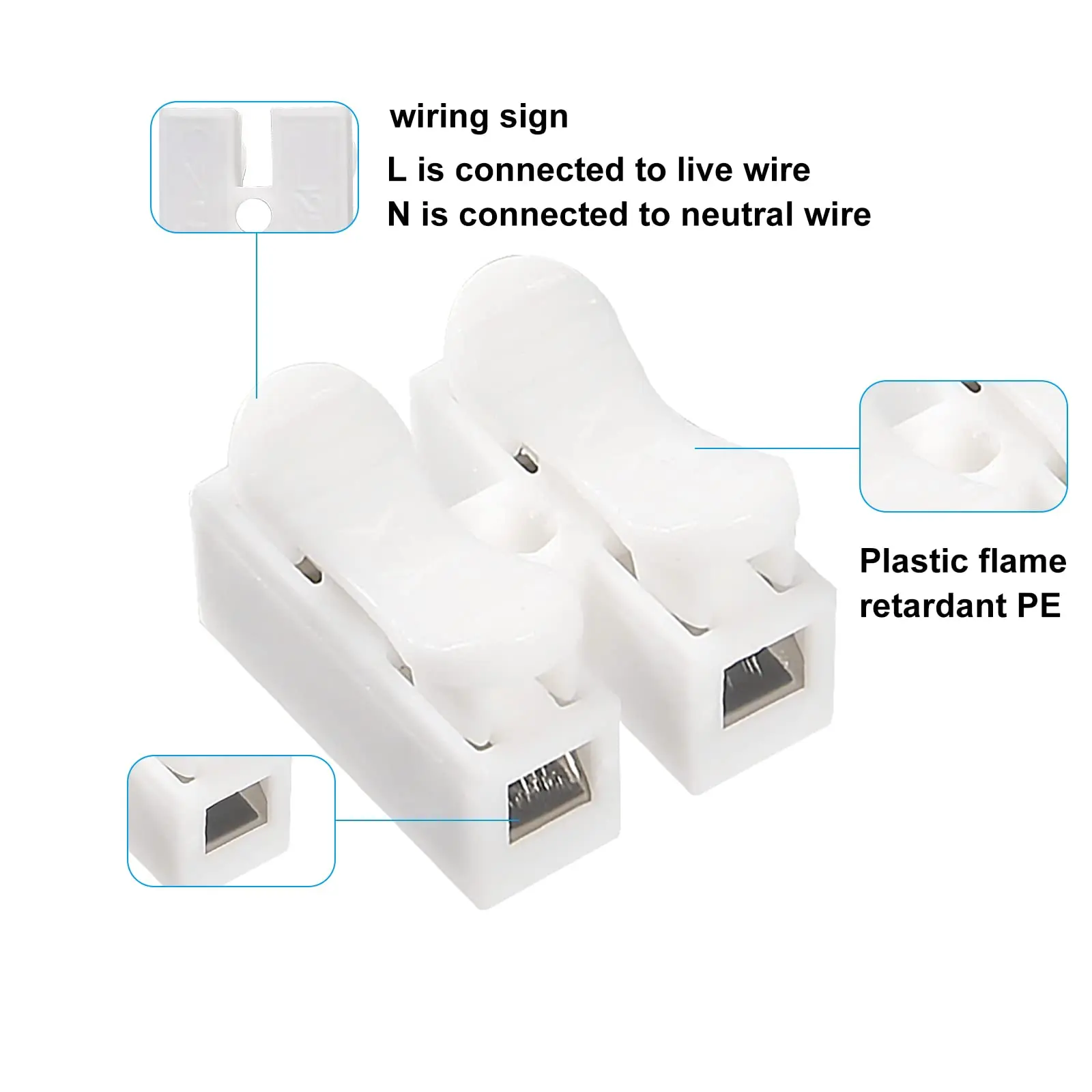 【Paquete incluido】: 20 piezas * 1 conectores de cable de resorte CH-1 de posición; Conectores de cable de resorte CH-2 de 20 piezas * 2 posiciones; Conectores de cable de resorte CH-3 de 20 piezas * 3 posiciones.