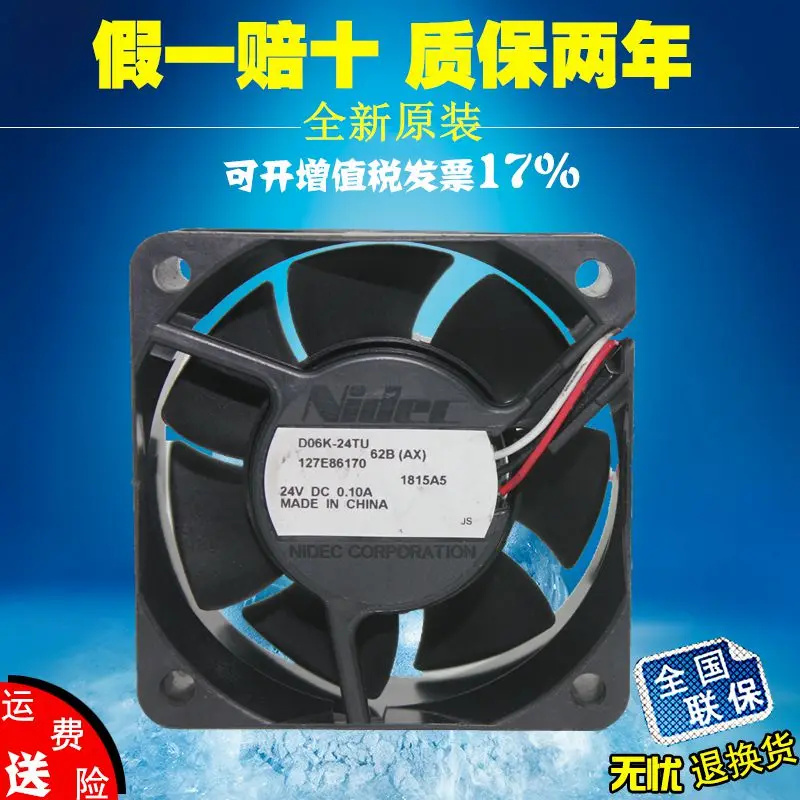 Tipo de producto: D06K-24TUTipo de producto: Ventilador DCVoltaje nominal: 24VFlujo de aire: 25CFMFlujo de aire (volumen de aire): 0,61 (m3 / minTamaño: 60*60*25MMCorriente: 0,10APotencia de entrada: 2,4 WVelocidad 4550r / minPresión estática Maxinmun (presión estática máxima) 51,9 PaRuido: 30dB (A)Masa: 65gVida: 75000 horas Los siguientes son los mismos que el"