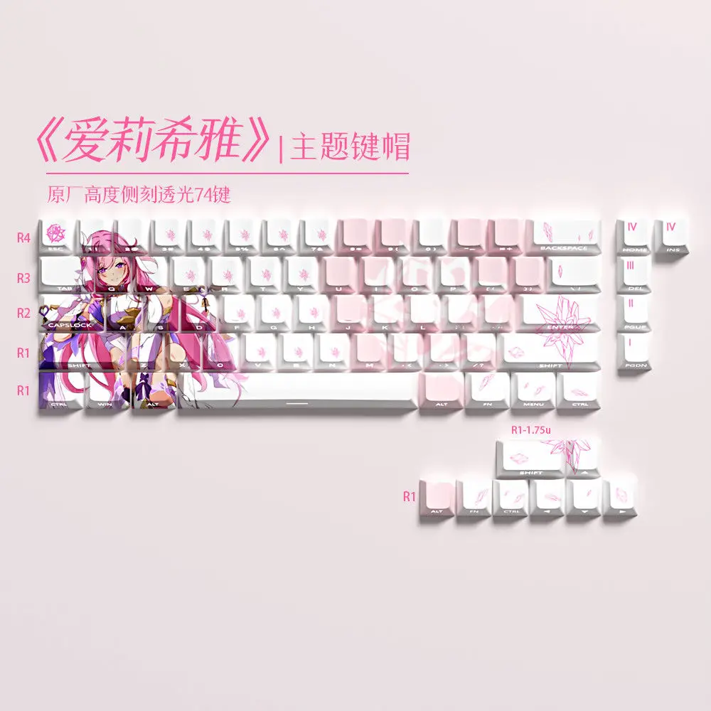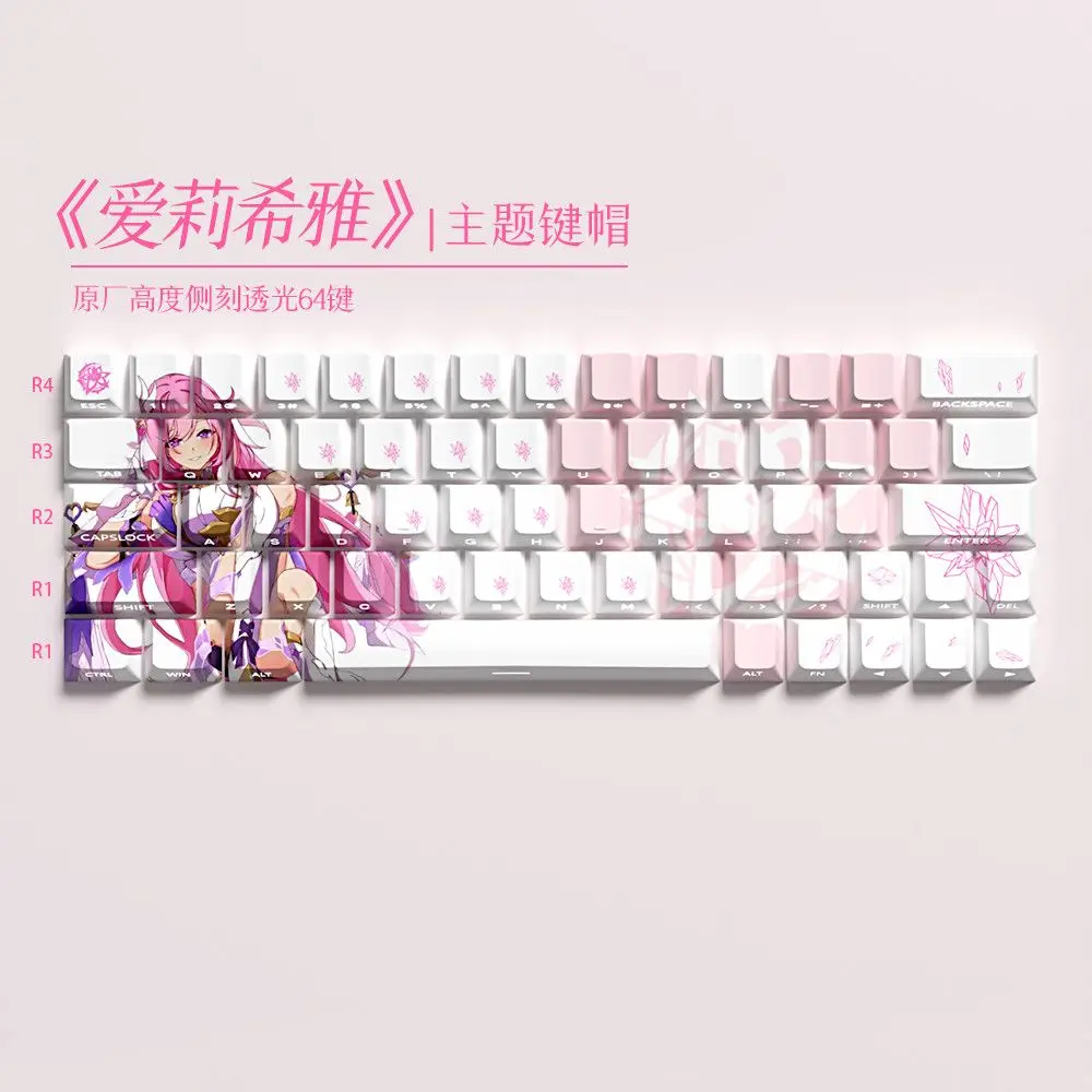 Comprar 63 teclas translúcidas Kes Elysia, tapas de juego de Anime, teclas con estampado lateral, PBT Dye-Sub Cherry para teclado mecánico Wooting 60 65 68