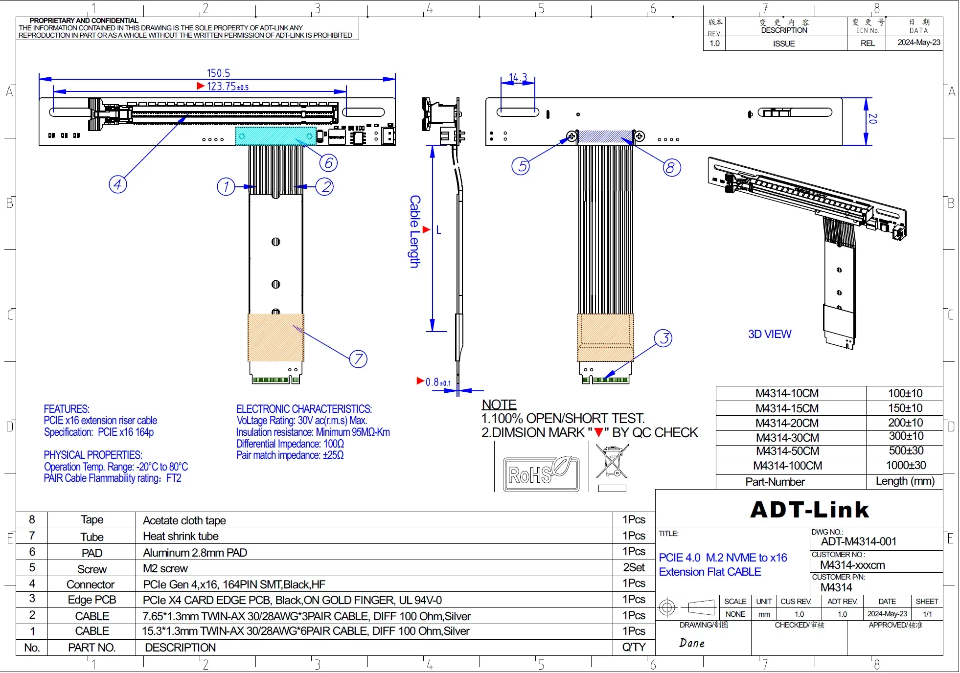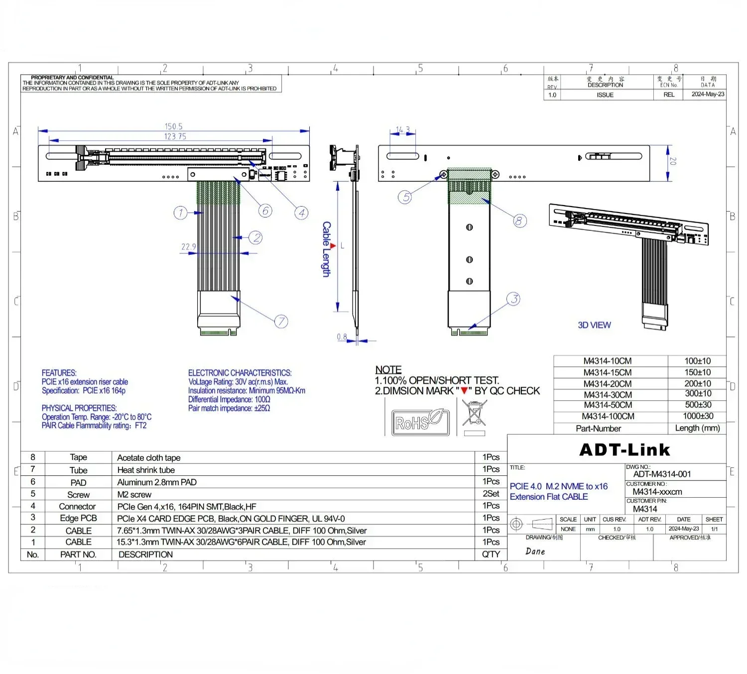 Cable elevador de extensión ADT-Link M.2 NVMe a PCI Express x16