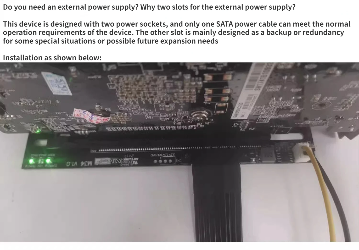 Con el producto se incluye un cable adaptador de corriente SATA y debe conectarse para tener una fuente de alimentación de 12 V.