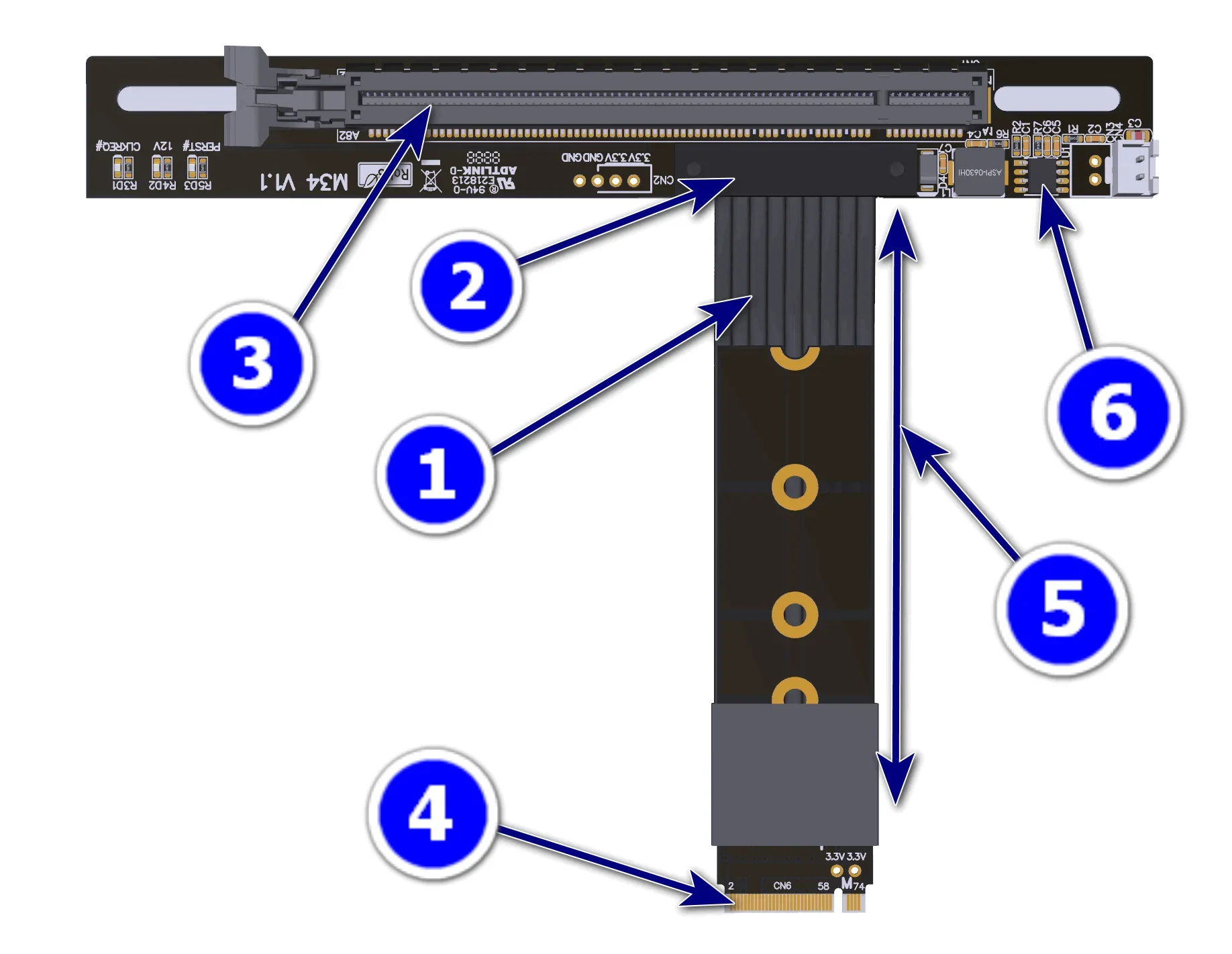 Aplicación: para tarjetas gráficas PCIe x16 Nvidia/AMD a extensión de ranura NVMe M.2 (ultra SSD, clave M)